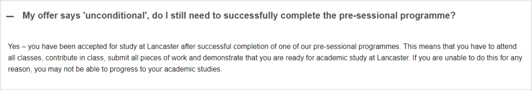是的。您在成功完成我们的其中一项语言课程之后,就可以在兰卡斯特大学接受学习了。这意味着您必须参加所有课程,在课堂上做出贡献,提交所有作品并证明您已准备好在兰卡斯特大学学习。如果由于任何原因而无法执行此操作,则可能无法继续学习。