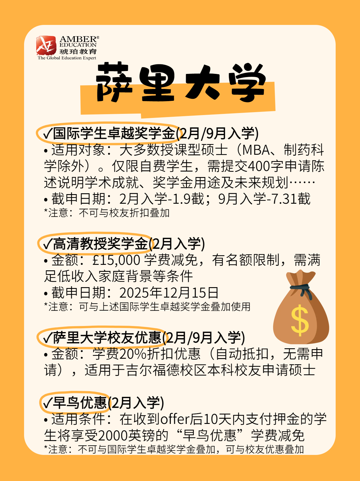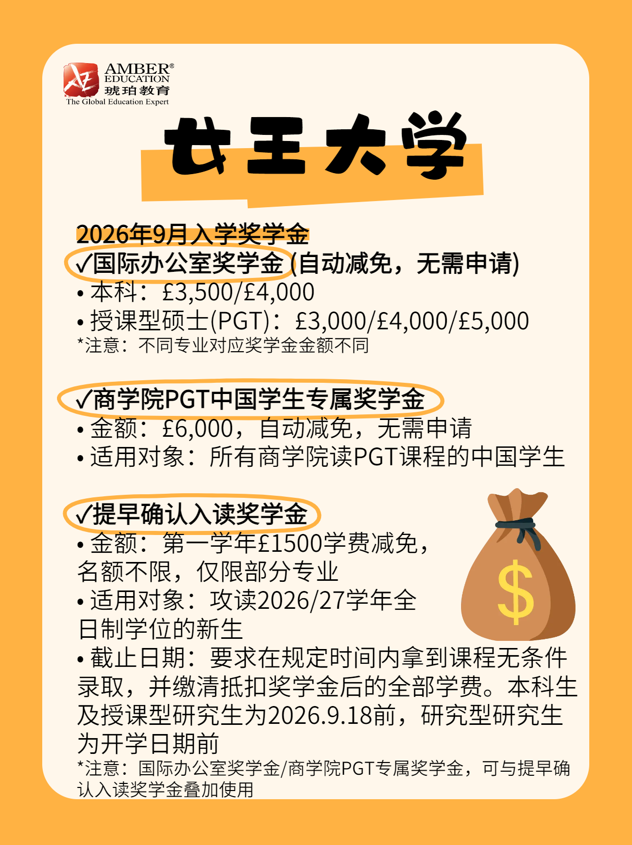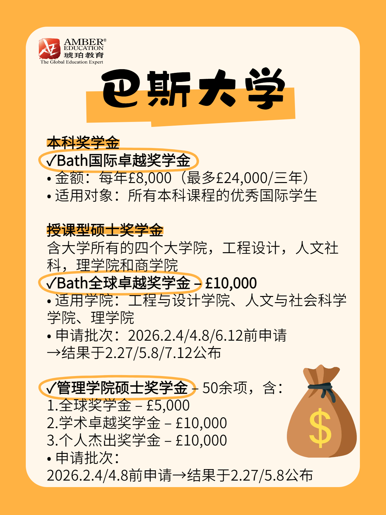 本科每年给£8,000,硕士£5,000-£10,000,但记得主动申请!工程设计,人文社科,理学院和商学院等学院均可申请,最早2026年2月截止